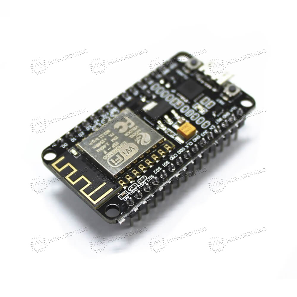 Контроллер Wi-Fi NodeMCU V3 (ESP8266, CP2102) предназначен для создания устройств интернета вещей. Он совмещает в себе функции микроконтроллера и модуля Wi-Fi. Благодаря интерфейсу USB устройство управления сетью можно быстро подключить к компьютеру, через него же и происходит питание. На корпусе по бокам расположены стандартные разъемы с шагом 2,54 мм. Всего находится 11 портов ввода и вывода стандартного назначения, включая ШИМ, I2C, SPI, UART. Микроконтроллер поддерживает встроенную прошивку NodeMCU, но при необходимости можно самостоятельно перепрошить его. Для записи кода доступно 64 КБ памяти, полный объем ОЗУ 96 КБ.
